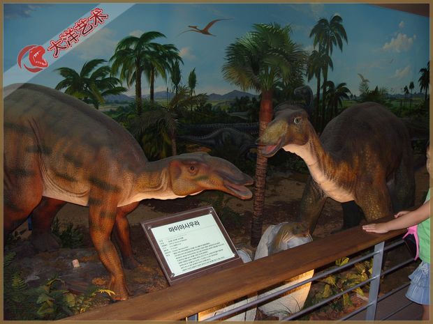 2005年仿真活體慈母鴨嘴龍組合展品在韓國靳吉道博物館安裝完成