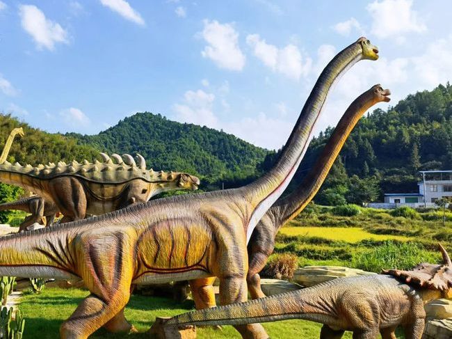 霸王龍、三角龍、劍龍、無齒翼龍、腕龍、甲龍......我們運(yùn)用現(xiàn)代科技按1:1比例仿真建造還原恐龍家族繁衍生息的場景。
